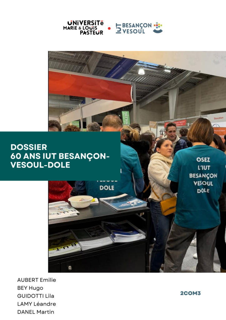 Lors de notre deuxième année de BUT, nous avons participé à un projet autour des 60 ans de l’IUT de Besançon-Vesoul. En une semaine, nous devions concevoir une stratégie de communication globale visant à valoriser cet anniversaire auprès des élèves de l’établissement.